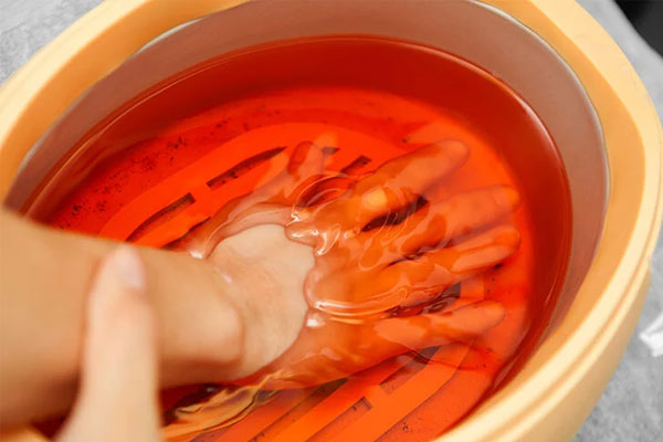 Melt the wax in the paraffin wax bath. Do not immerse your hands or feet into the wax at this time.
